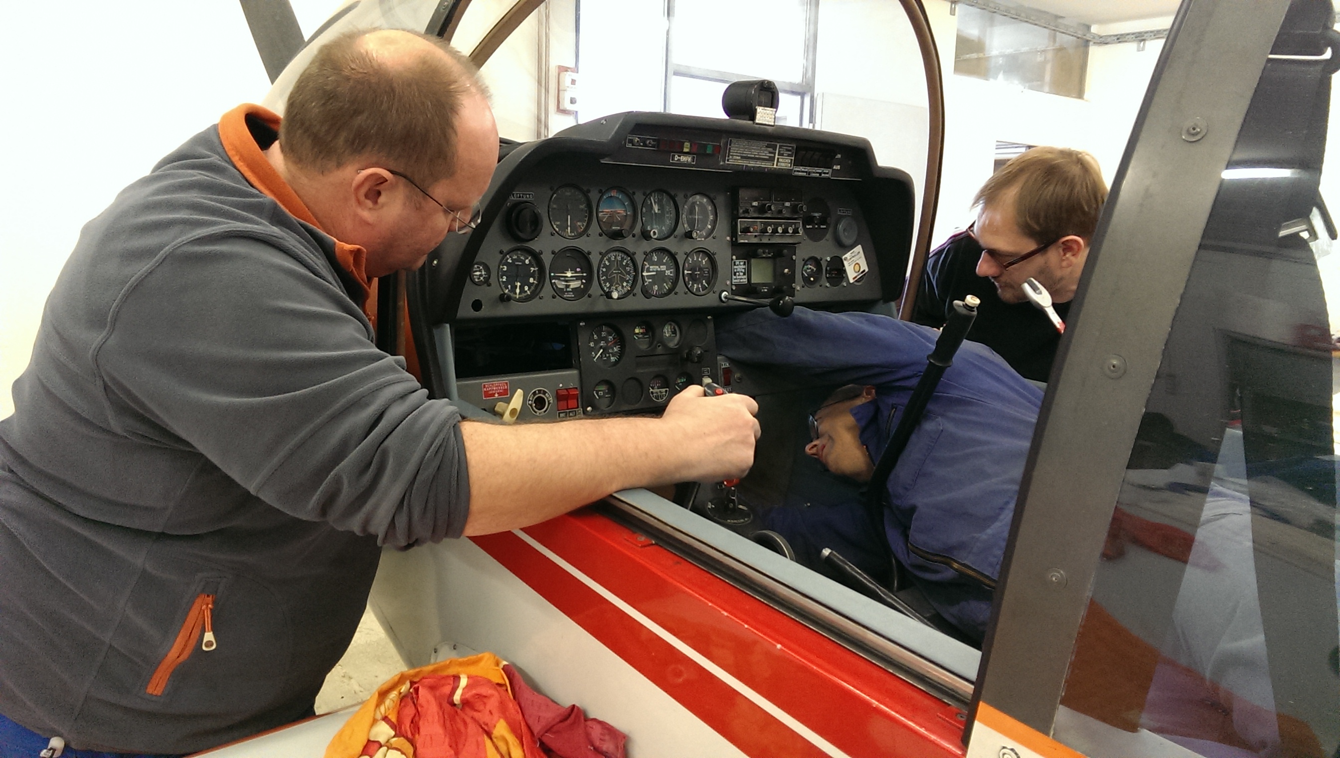 Damit es in ein paar Wochen wieder losgehen kann mit der Fliegerei, sind die Vereinsmitglieder derzeit fleißig dabei, die Flugtechnik zu warten und zu pflegen. Mit viel Geschick und Sachverstand werden die Segel- und Motorflugzeuge in der Werkstatt in ihre Einzelteile zerlegt und nach genauer Kontrolle und eventuell notwendigen Reparaturarbeiten wieder zusammengesetzt. Aber auch auf dem Flugplatzgelände gibt es immer etwas zu tun. Einige Vereinsmitglieder nutzen die Saisonpause, um die Räume in unseren Objekten zu renovieren oder umzugestalten.
