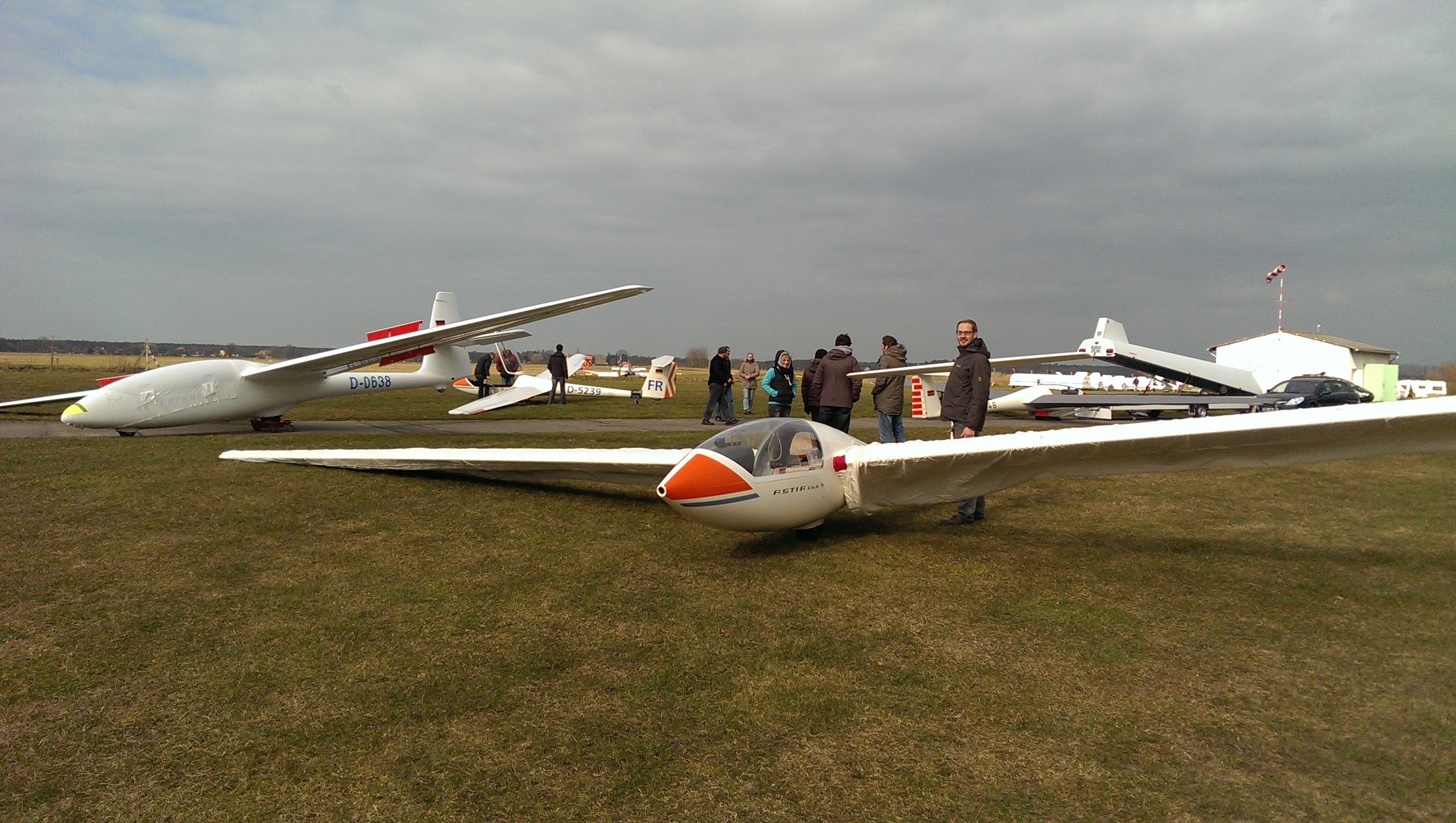 Eigentlich hatten die Segelfliegerinnen und Segelflieger des Fliegerclub Rostock e.V. am letzten Märzsamstag das erste Mal in diesem Jahr vor, ihre Flugzeuge gen Himmel ziehen zu lassen. Da sich dieser aber grau und trübe zeigte und die Sonne nur kurz zu einem „Fototermin“ hinter den dicken Wolken hervorschaute, haben die erfahrenen Techniker, etliche Helfer und einige neue Flugschüler die Zeit genutzt, um 7 vereinseigene Ein- und Doppelsitzer aufzurüsten, die Elektronik zu prüfen und letzte Vermessungen vorzunehmen, damit über Ostern bei hoffentlich schönem Wetter endlich geflogen werden kann. Ganz ohne „Flugbewegungen“ blieb der Tag dann aber doch nicht. So nutzten einige Piloten die Chance, auf dem Motorsegler oder der Remorqueur ihre Jahresüberprüfung zu fliegen und einen kleinen Abstecher in die nähere Umgebung zu machen. Es wurden insgesamt 86 Flüge auf Vereinsmaschinen verzeichnet. So kann es weitergehen…