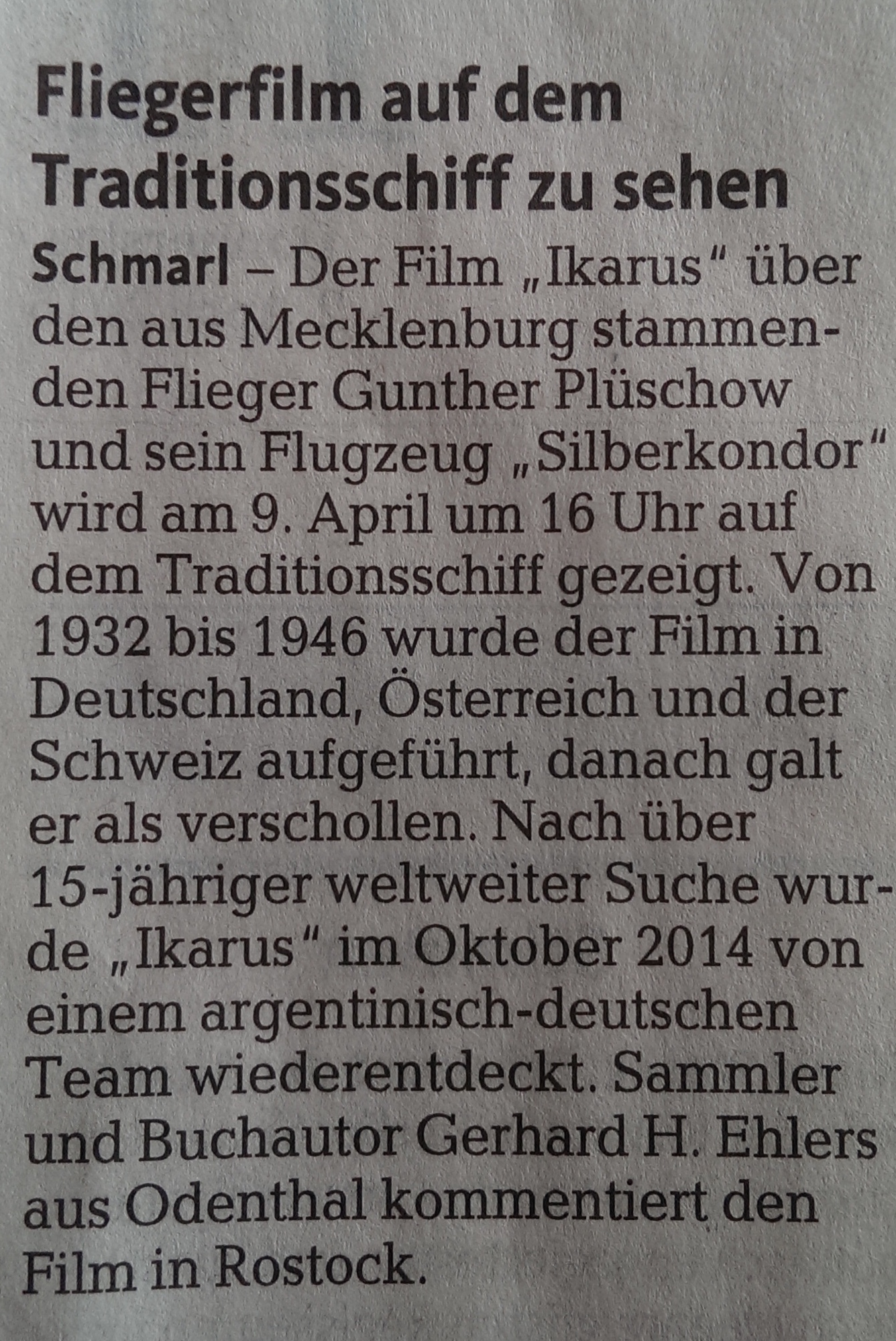 Gerhard H. Ehlers, gebürtiger Rostocker, ausgewiesener Plüschow-Kenner und Feuerlandliebhaber, lässt uns an den Erlebnissen des mecklenburgischen Feuerlandfliegers teilhaben. Sehen und hören Sie, mit welchem Enthusiasmus und unter welchen Opfern es den tollkühnen Männern gelang, sich ihren Traum vom Entdecken und vom Fliegen in unbekannte Gegenden zu erfüllen.