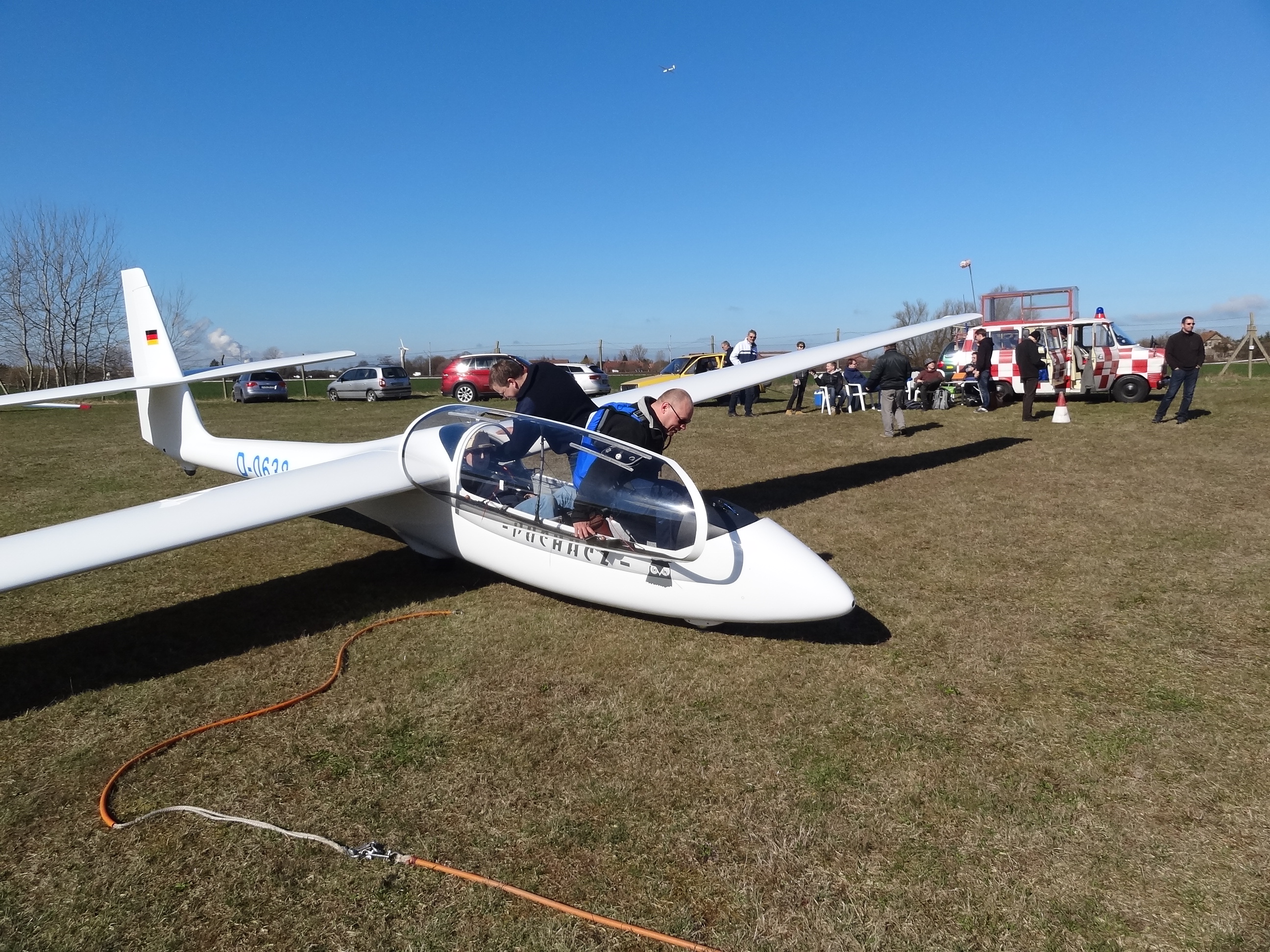 gewinnbringend, auch vier neue Flugschüler gingen das erste Mal „in die Luft“ und fühlten sich dort sichtlich wohl. Ein in der Ausbildung bereits fortgeschrittendes Mitglied der Jugendgruppe des FCR schaffte mit einem Fluglehrer seine Prüfungsstrecke von 100 Kilometern und ein weiterer Jugendlicher begann die Umschulung auf den Astir 77. Insgesamt gesehen war das Fliegen für fast alle Flugschüler an diesem Wochenende neu, denn der Bocian, das bisherige Schulungsflugzeug, hat ausgedient, und nun dürfen die Schüler im Puchacz ihre Runden drehen. Beäugt und beurteilt von den zwei frischgebackenen Fluglehrern, die vor kurzem ihre Ausbildung abgeschlossen haben und nun selbst Anderen das Fliegen beibringen dürfen.