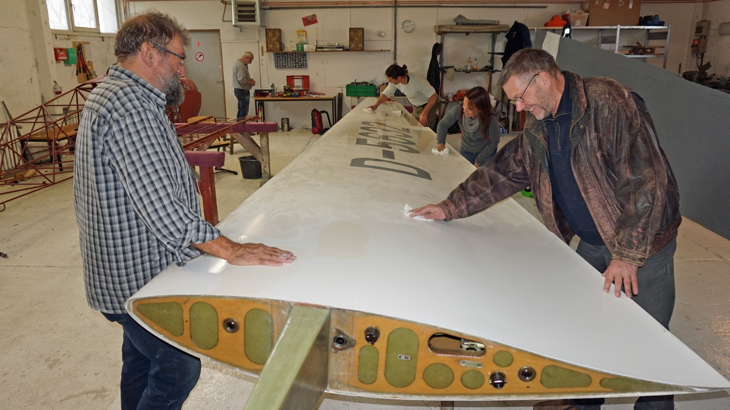 Am nächsten Tag wurden die Vereinsflugzeuge in ihren Anhängern verstaut oder in Einzelteilen in die Werkstatt verbracht, wo nun auch schon die Winterwartung in vollem Gange ist.