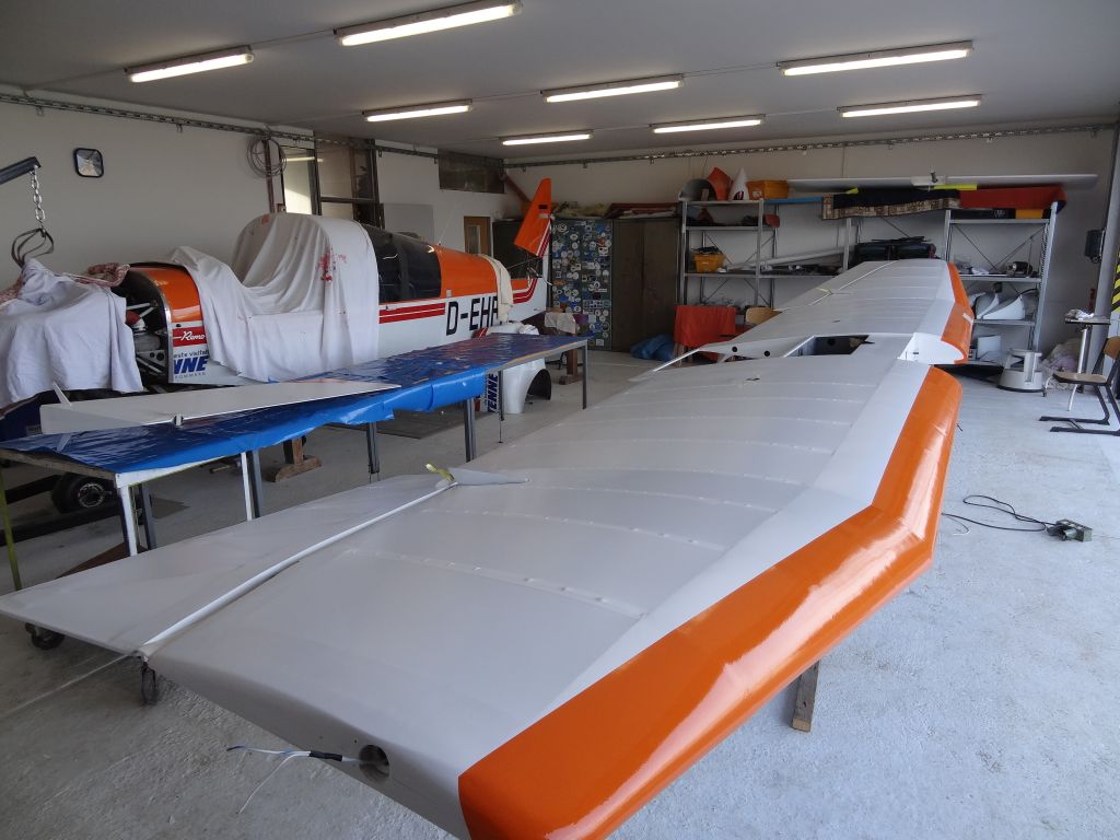 Seit Oktober versteckte sie sich in der Werkstatt, zerlegt in fast alle Einzelteile und ihre Flächen nackt bis auf das Holz – unsere Remorqueur DR-400. Die Wartung des vereinseigenen Motorflugzeuges sollte in diesem Winter zur Mammutaufgabe für die Techniker werden. Denn besonders das Bespannen der Tragflächen mit einer Folie erforderte viel Zeit und Fingerspitzengefühl. Und vor allem Know-how, welches sich drei Piloten des Vereins extra für dieses Projekt während eines Lehrganges im Werk von Oracover Leipzig aneigneten.