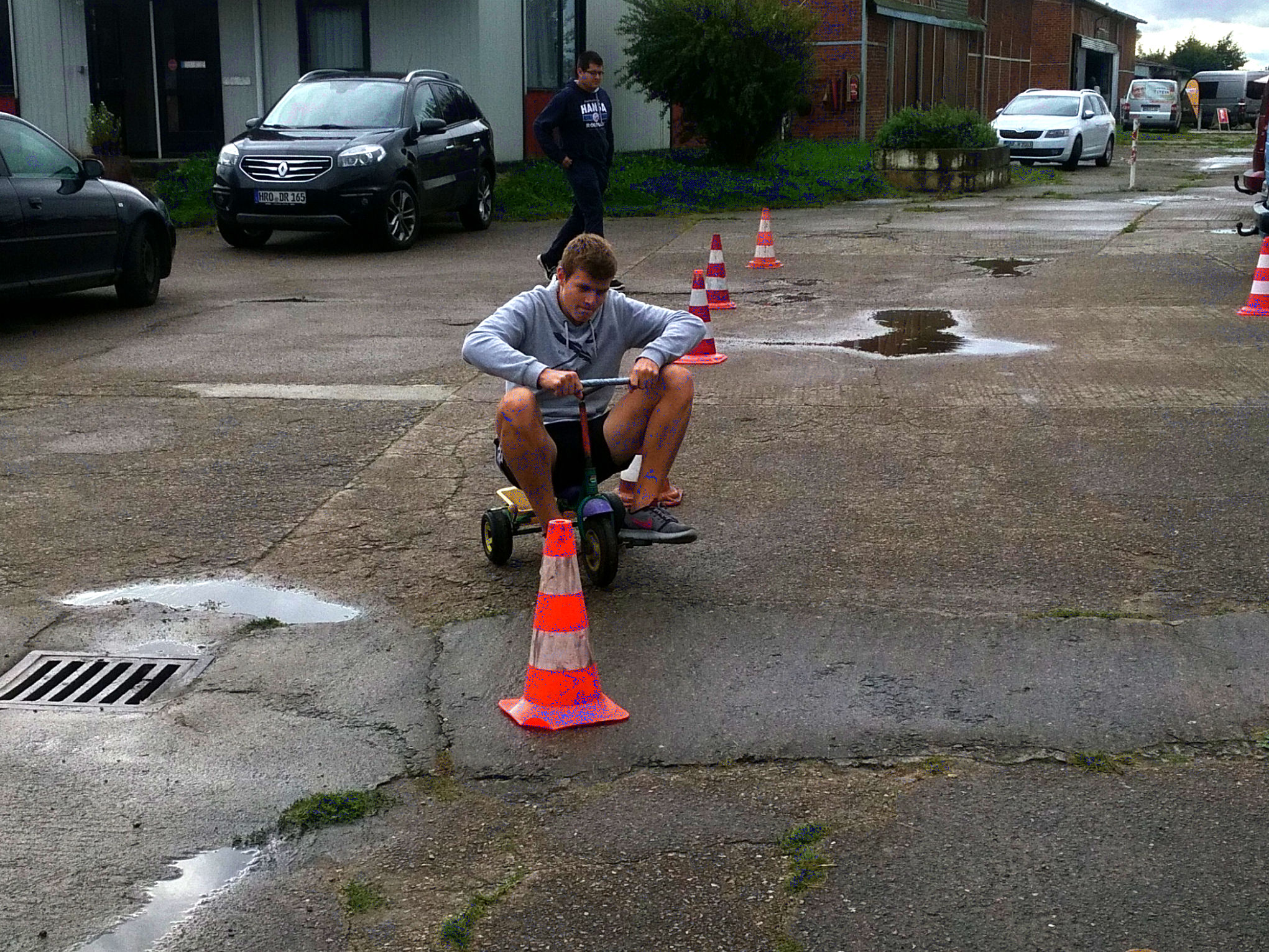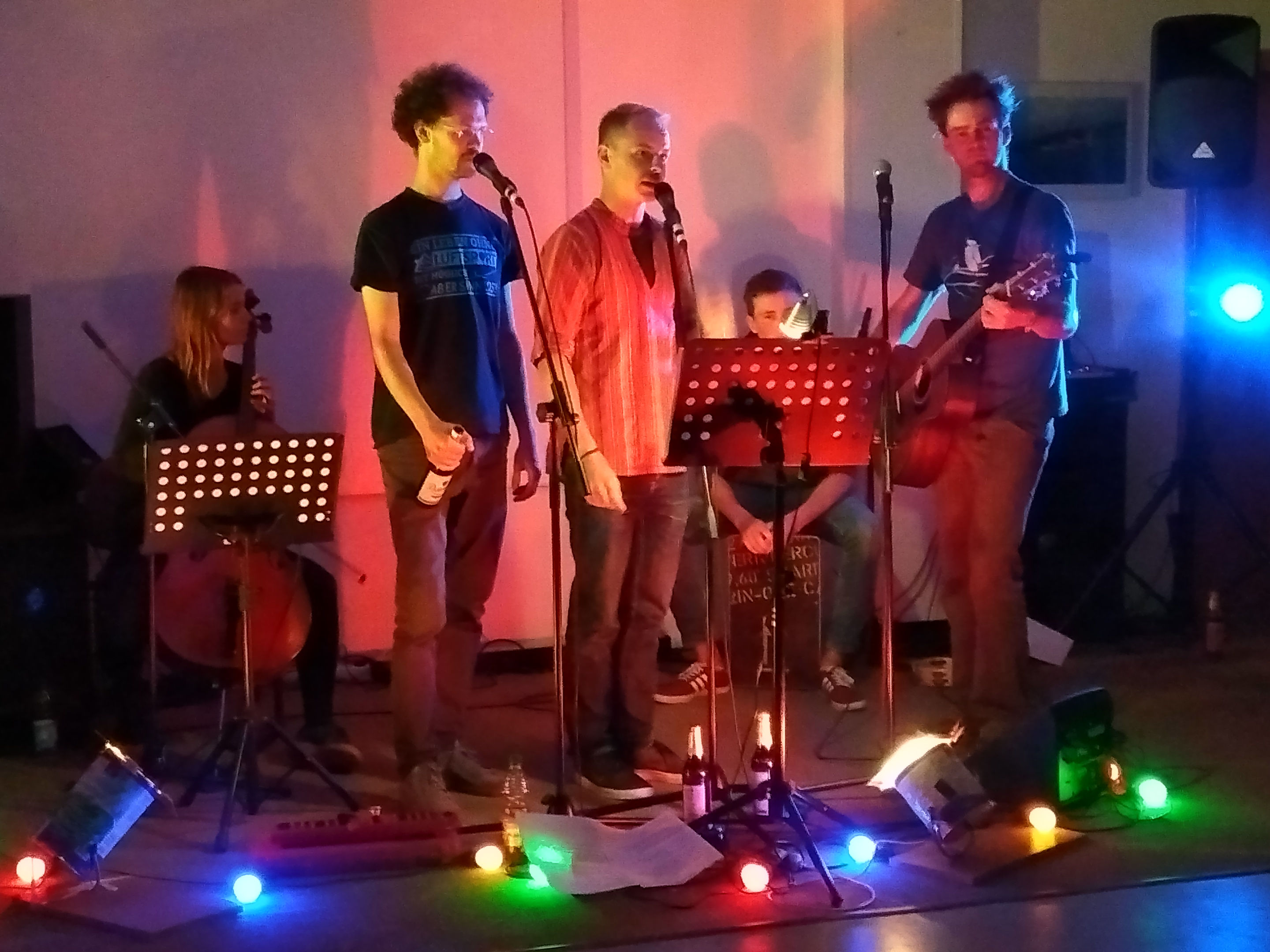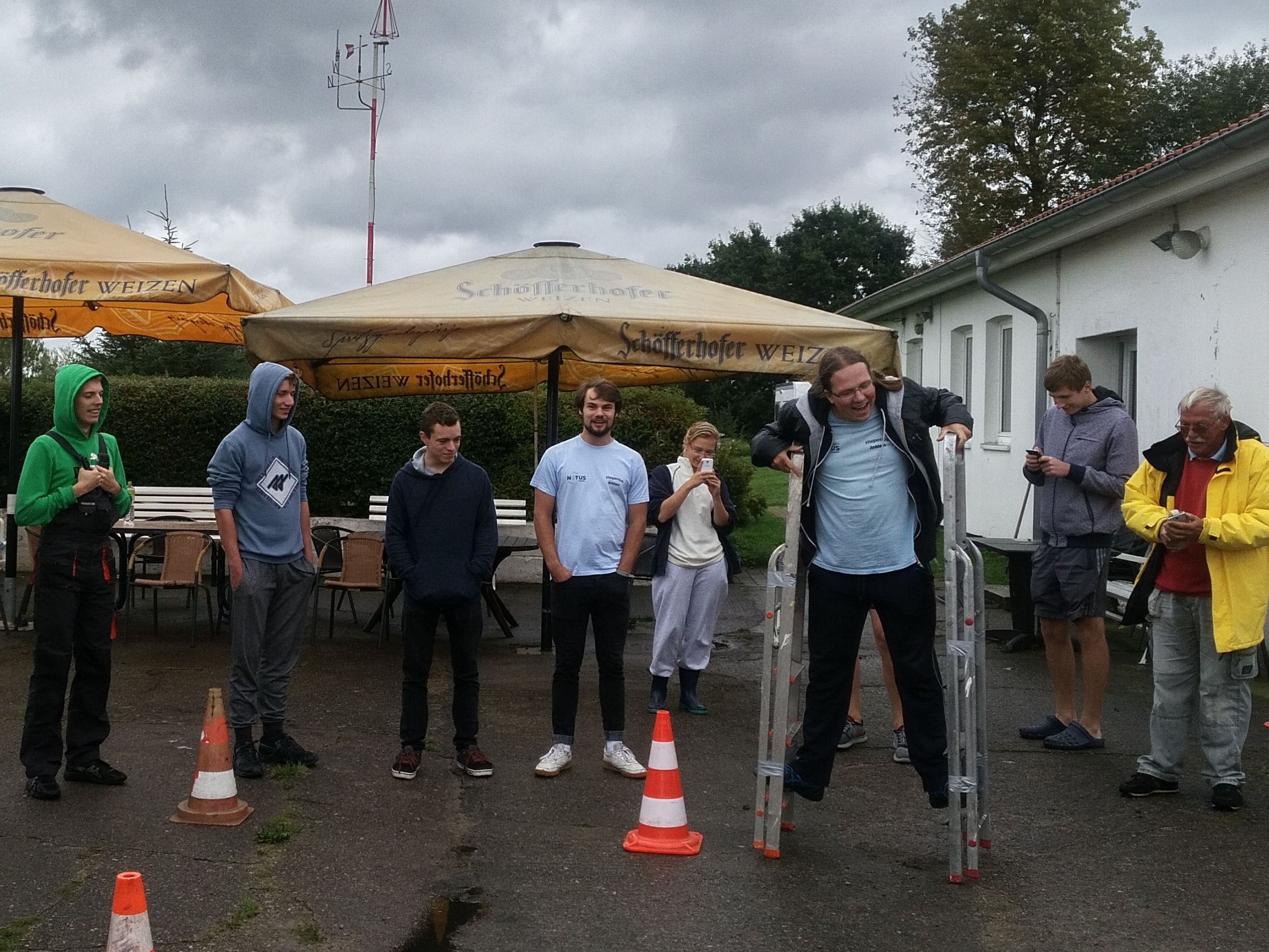 Die Jugendlichen ließen sich ihre gute Laune nicht durch das schlechte Wetter verderben und verbrachten den Rest des Nachmittags mit allerlei lustigen Spielen, wobei sich sogar die Sonne ein wenig zeigte. So wurde auch die eigentlich als Abschluss des Events geplante Abendparty als Einstimmung auf den kommenden Wettkampftag genutzt. Nach einem schmackhaften Abendbrot in Form eines riesigen Wildschweins gab die „Flugplatzkapelle Stölln“, allesamt selbst Segelflieger, ihr nördlichstes Konzert in ihrer Bandgeschichte. Lieder über Windenfahrer, Platzgeier, Flugschüler und Thermikprofis heizten die Stimmung an. Es wurde geschunkelt, geklatscht und ordentlich mitgesungen. Im Anschluss übernahm DJ Ventur die Regler und sorgte dafür, dass das Tanzbein geschwungen wurde.