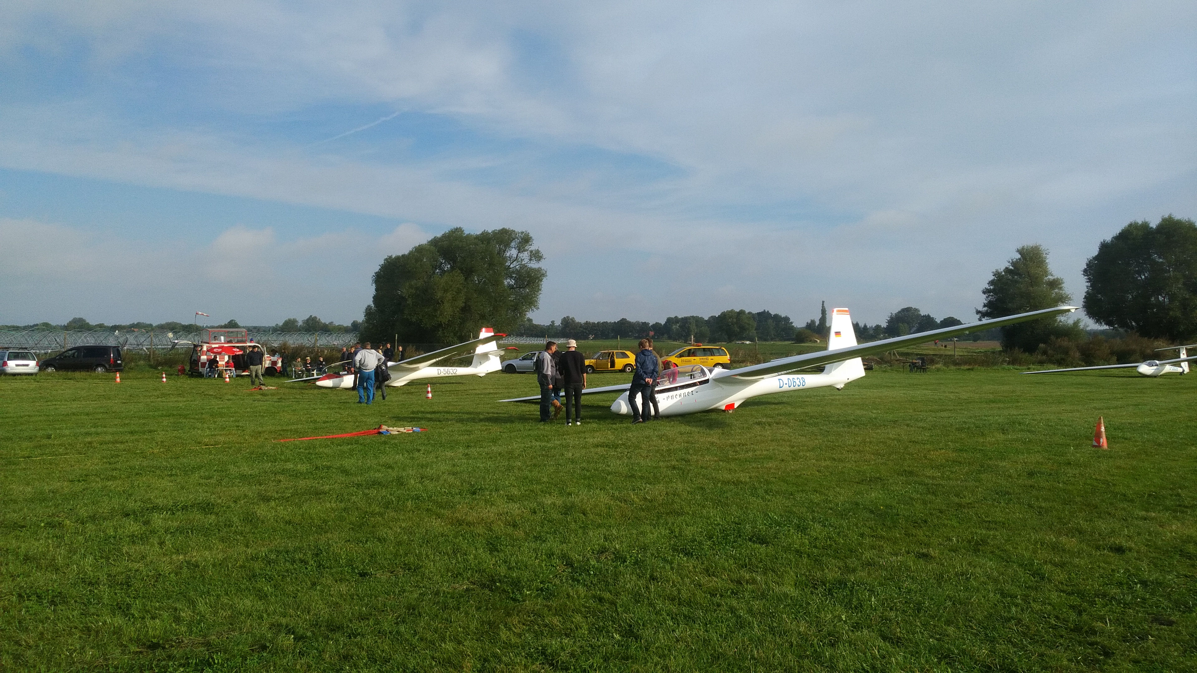 Rekordverdächtige 19 Teilnehmer aus sieben Vereinen reisten am Freitagnachmittag mit ihren Fluglehrern und Helfern an. Vom Fliegerclub Rostock waren Ivo Behnke, Daniel Bierlich, Max Potratzki und Lucas Schwarz als Starter gemeldet. Zunächst wurden Zelte aufgebaut, Wohnwagen ausgerichtet und die Platzgegebenheiten in Augenschein genommen. Nach der Dokumentenkontrolle sollten eigentlich die Einweisungsstarts stattfinden, was der Regen aber verhinderte. Die Zeit wurde trotzdem gut genutzt, denn die Piloten hatten einen schriftlichen Kurzfragetest zu absolvieren, bei dem sie zeigen mussten, wie fit sie in der Theorie sind.