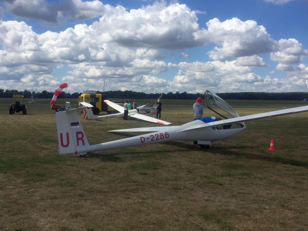 Sommer, Fliegen, gute Laune – das war unser Sommerlager in Stichworten zusammengefasst. Nachdem eine Woche in Purkshof geflogen wurde, packten die teilnehmenden Pilotinnen und Piloten ihre Koffer in die Autos und und die Flugzeuge in die Anhänger und fuhren nach Klix in der Oberlausitz, wo der dort ansässige Segelflugverein für die nächsten 14 Tage ihr Gastgeber sein würde.