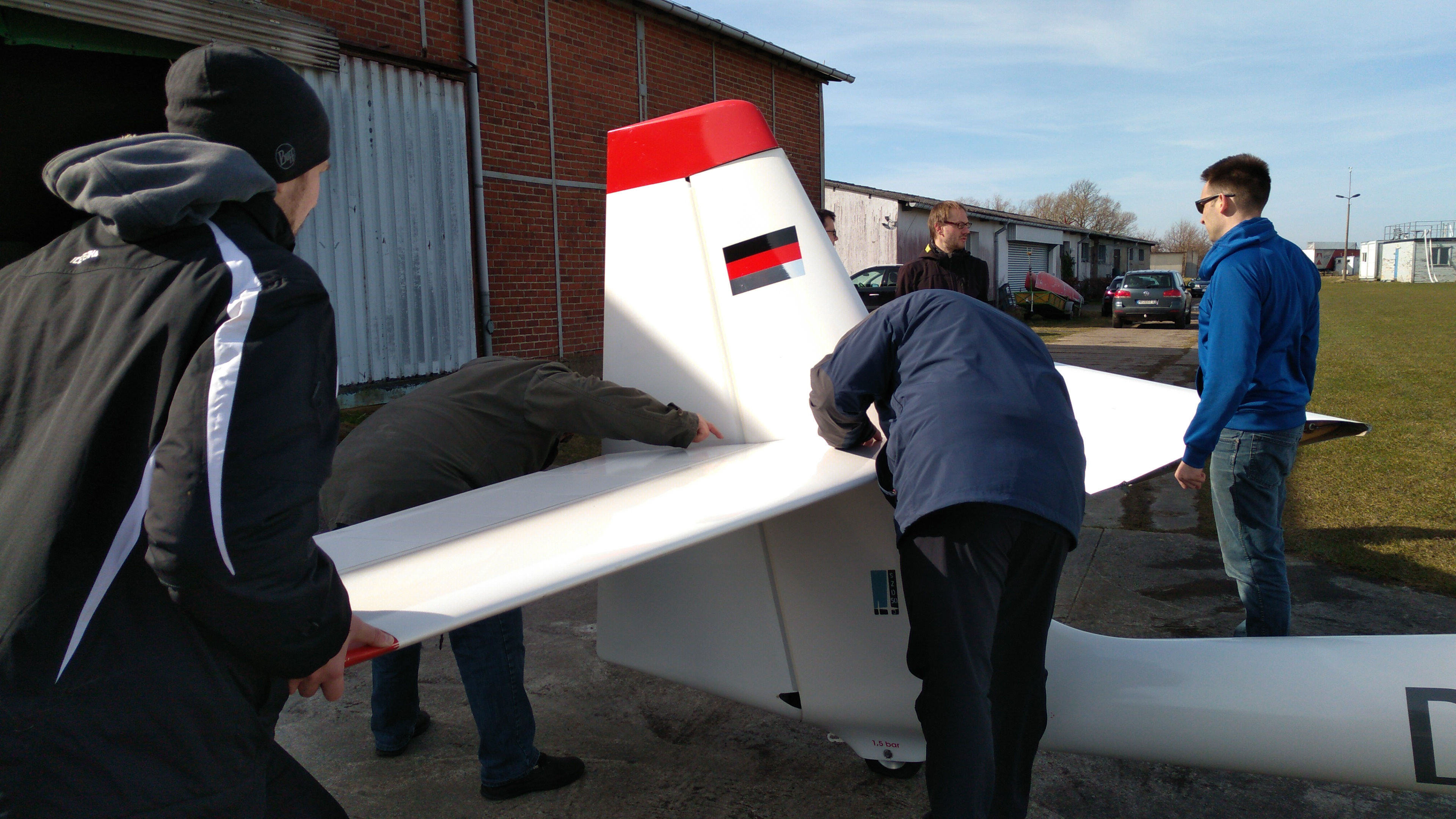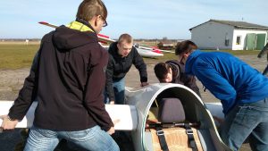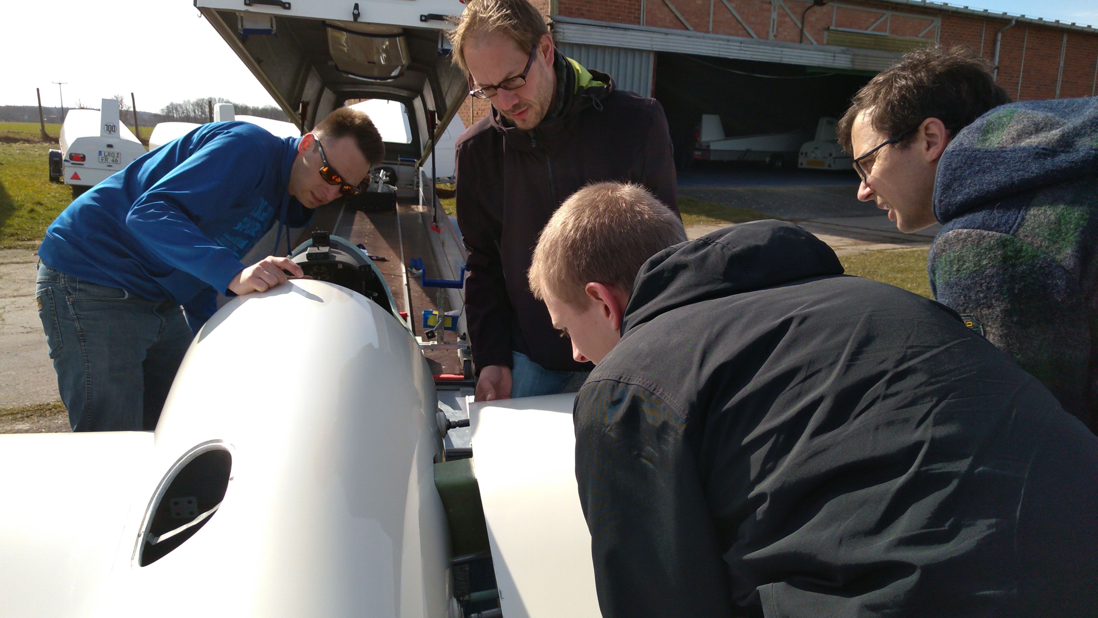Die Hoffnung, dass in absehbarer Zeit geflogen werden kann, ließen sich die Anwesenden jedoch nicht nehmen. Mit vereinten Kräften holten sie die Segelflugzeuge aus ihren Anhängern, steckten die Flächen an den Rumpf, testeten Ruder und Funk und genossen dabei die wärmenden Sonnenstrahlen.