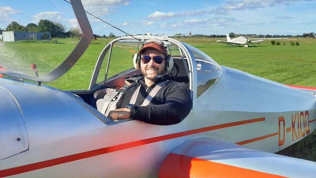 Stefan Meysing (32) ist motorisiert in der Luft unterwegs. Der Motorseglerpilot wird von Peter Rohde ausgebildet und durfte nun das erste Mal allein seine Runden über dem Flugplatz drehen. Herzlichen Glückwunsch, Stefan!