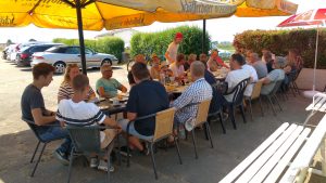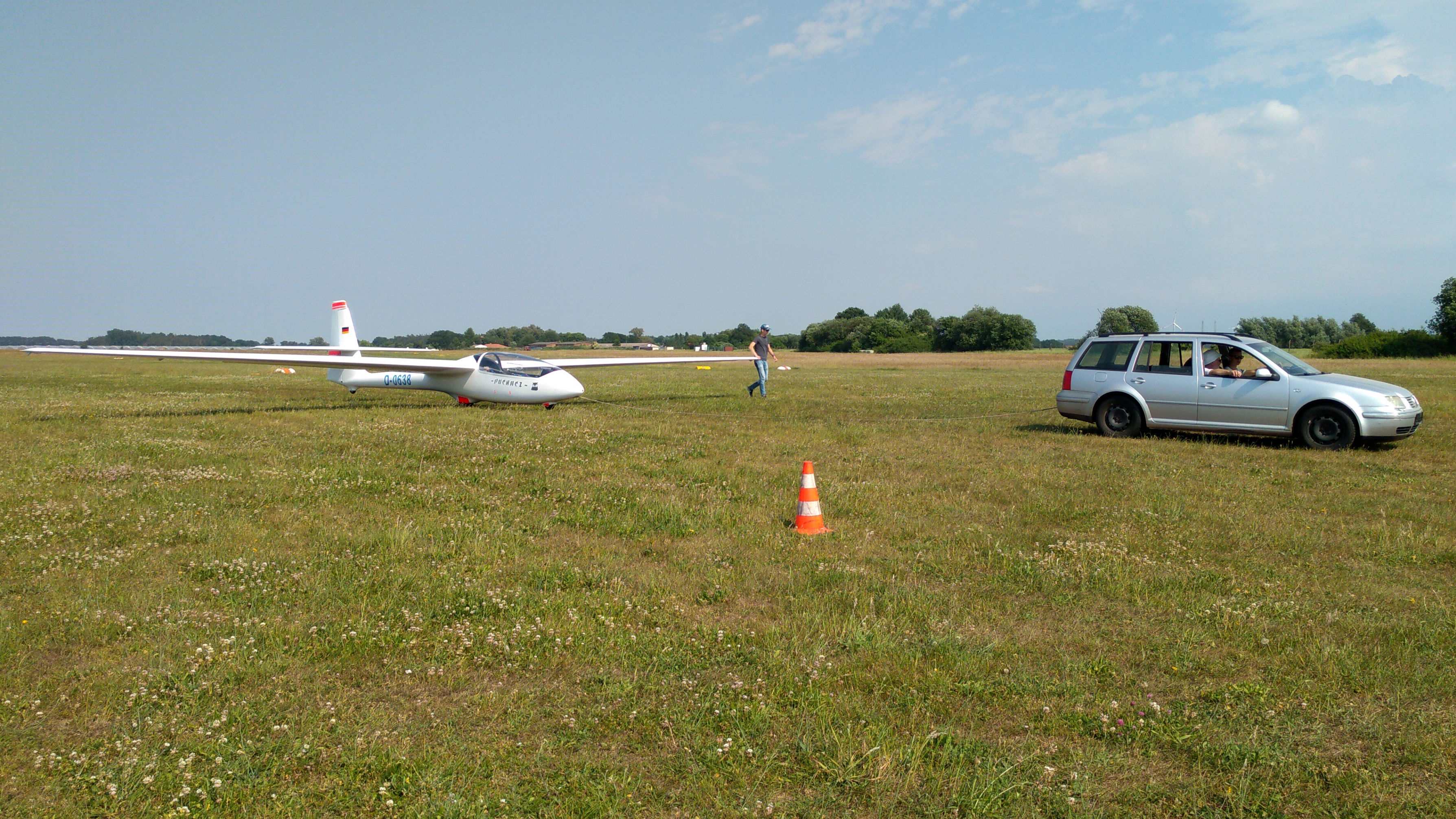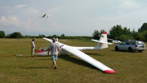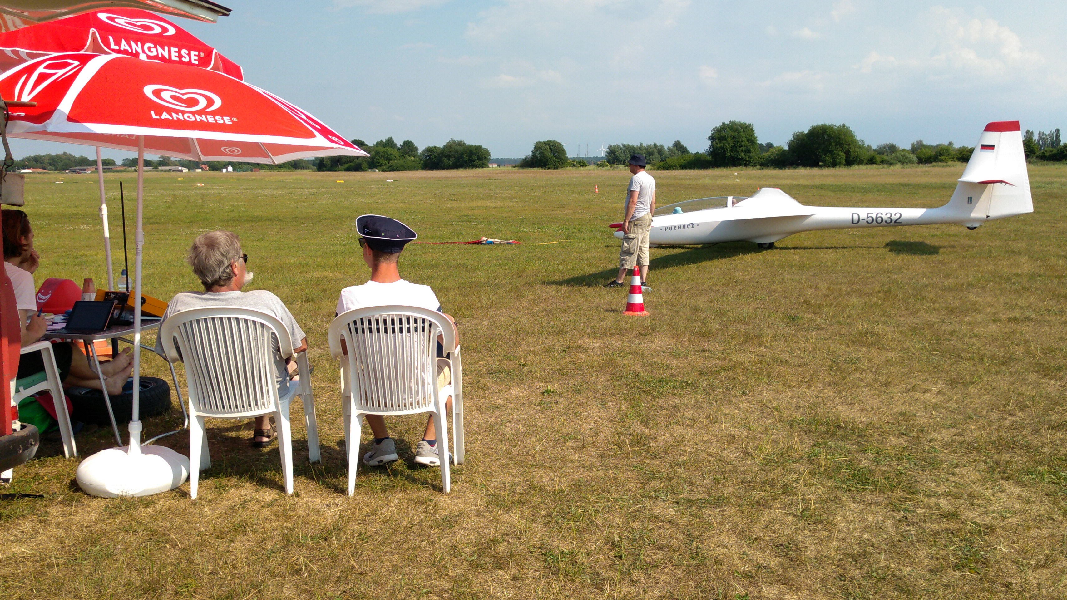 Und die Resonanz war erfreulich. In Begleitung eines Fluglehrers nutzten auch lange nicht gesehene Vereinskameraden die Chance, bei bestem Wetter über Purkshof ihre Kreise zu drehen. Längere Flüge waren aufgrund der kaum nennenswerten Thermik zwar nicht möglich, das war an diesem Tag aber zweitrangig angesichts der guten Laune, die das Wiedersehen mit Freunden mit sich brachte. So wurden fast alle Flugzeuge „bewegt“ und bei heißen Temperaturen 34 Starts durchgeführt. Eine gemeinsame Kaffeepause unter dem kühlenden Sonnenschirm kam da gerade recht.