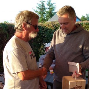 Bevor der Abend mit leckeren Speisen und allerlei Fliegergeschichten ausklang, stand noch ein Höhepunkt auf dem Programm: Reinhard Zeese, der bisherige Ausbildungsleiter des Fliegerclub Rostock, hat sich über viele Jahre um den Fliegernachwuchs des FCR gekümmert und so manches Vereinsmitglied auf dem „Weg vom Fußgänger zum Piloten“ begleitet. Der Vorsitzende Sven Bradtke dankte Reinhard für seine ehrenamtliche Tätigkeit und überrreichte im Namen des Vereins eine kleine Aufmerksamkeit. In Zukunft wird der neue Ausbildungsleiter Michael Dalitz die Geschicke der angehenden Lizenzpilotinnen und -piloten lenken und leiten. Herzlichen Dank, Reinhard, und viel Erfolg, Michael!