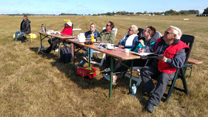 Auch der Samstag ließ sich wettertechnisch gut an. Bevor es allerdings an den Start und damit in die Luft gehen konnte, mussten die Teilnehmer einen Theorietest absolvieren, der es in sich hatte. Ein Pilot schaffte die Null-Fehler-Marke – eine gute Voraussetzung für den nun folgenden praktischen Teil.